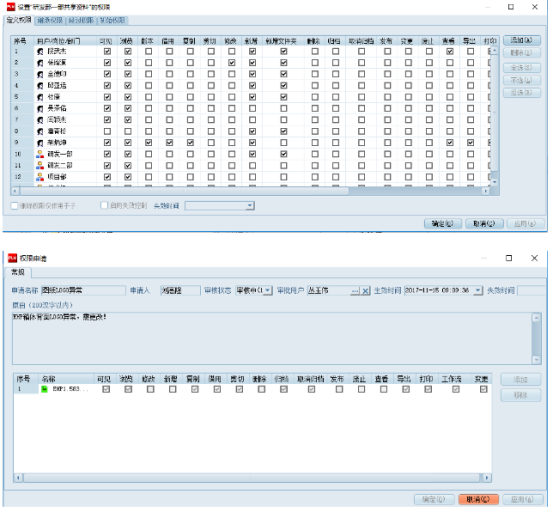 2、严密的全系体系管理,针对模块、文件夹、文件均可分配权限,可定义权限包含21项之多,多角度多维度控制文件的安全;权限申请机制,主管可灵活配置员工权限需求,并且能够有据可查。
