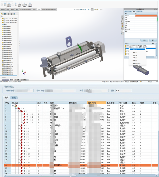 通过Solidworks集成,把工程师设计出的图纸导入到系统,通过图纸生成BOM表,最后再编辑BOM表明细,完善之后备件辅料,完成整个产品BOM表搭建后由工程师取用。