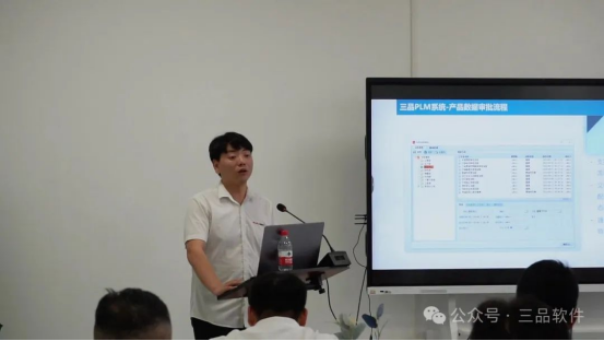 随后,三品软件项目经理李征军全面阐述了PLM项目的规划蓝图。涵盖项目概述、实施组织、阶段安排与保障措施等内容。该项目旨在通过构建企业集中文档库以提升知识共享效率;优化设计资源管理以加速产品开发;推行物料标准化消除冗余编码;建立完善的文件管理体系,并实现PLM与ERP系统的深度集成。