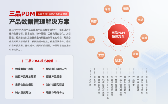 随着合作的深入,双方实现了PDM与企业ERP系统的全面集成。这一突破意味着研发与生产、供应链等环节的数据壁垒被打破,实现了真正意义上的数据贯通。通过API接口实现的三品PDM与ERP系统无缝对接,使物料、BOM及工艺数据能够自动同步,支撑生产计划精准执行,显著缩短产品交付周期。