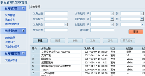 在三品PLM中,可以结合收发管理,将变更文件快速进行下发,通知相应的接收者: