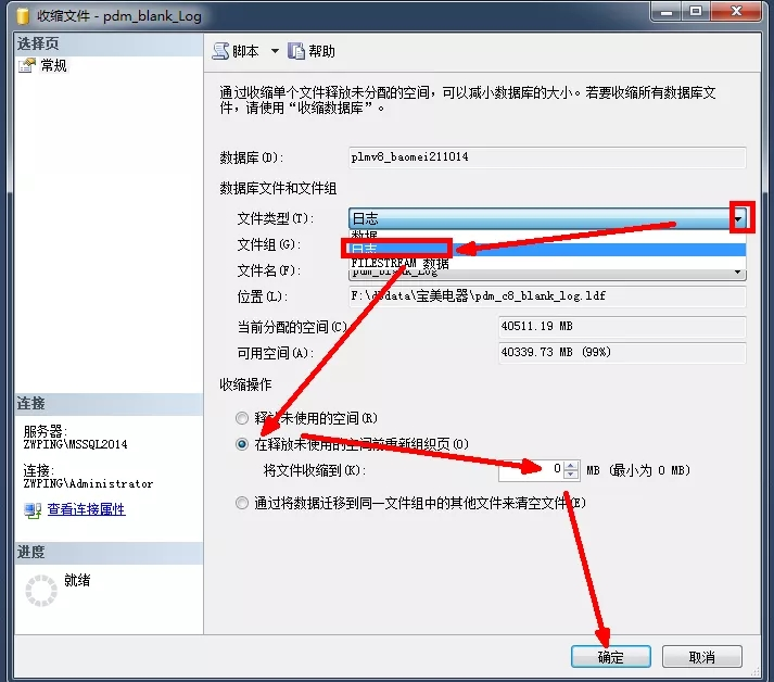 MSSQL数据库的日志空间主要用于存放事务处理日志,一般情况下如果磁盘空间足够,我们不建议清理磁盘空间。但如果日志空间占用过大,则可以采取如下步骤对日志空间进行压缩以便节省空间: