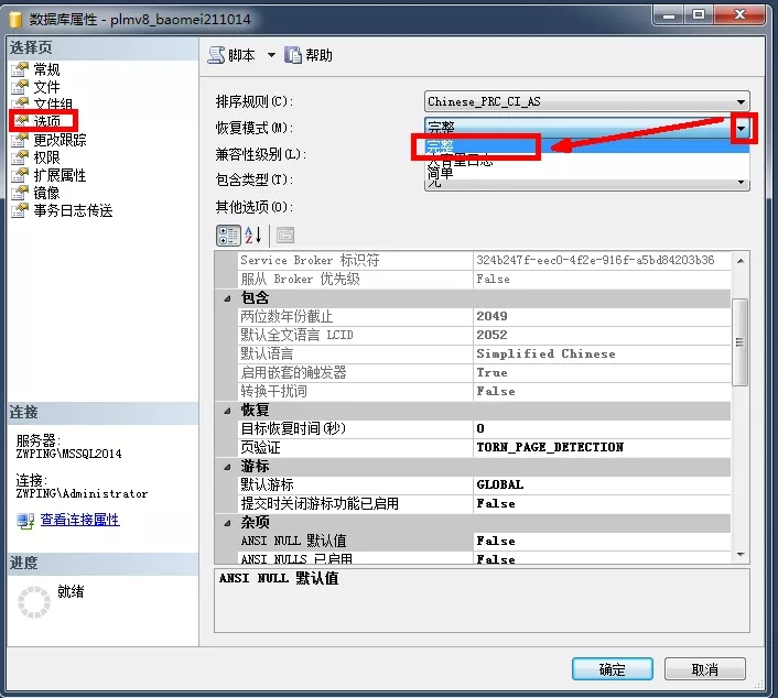 ○数据库-->属性-->选项-->恢复模式-->简单。