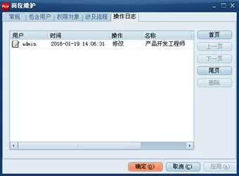 【操作日志】用于记录该用户在岗位维护属性里的操作、操作时间、操作对象、操作结果和用户IP。