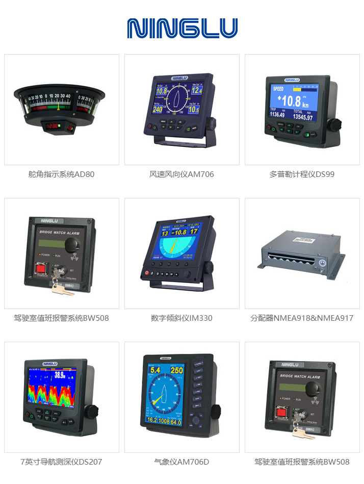 南京宁禄科技有限公司,目前公司坐落于江宁未来网络小镇内,宁禄科技主要研发销售船舶航行配套设备,目前主产品有导航测深仪、计程仪、风速风向仪、驾驶室值班报警系统、舵角指示系统等及相关的复显仪和接线盒等配套设备。