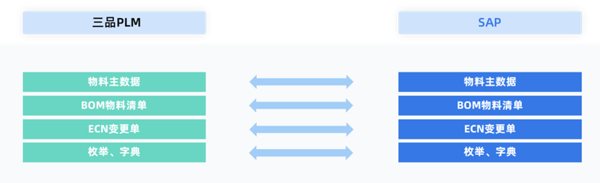 三品PLM系统、SAP ERP系统的双向集成的功能主要如下: