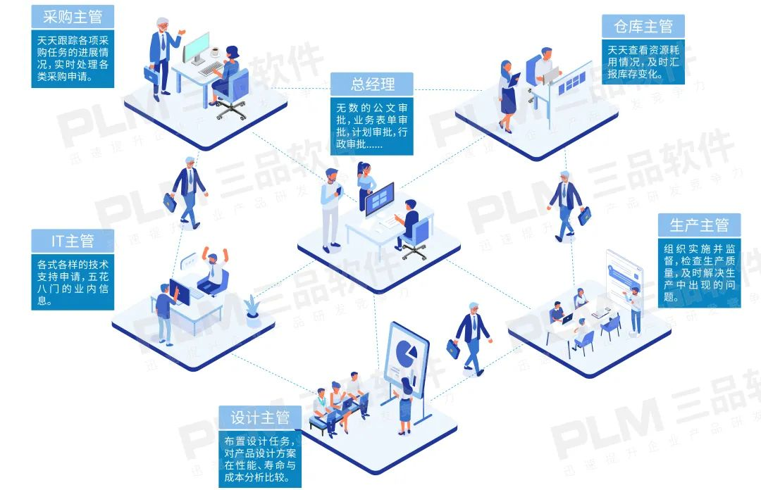三品PLM通过图文档管理、物料管理、产品管理、流程管理、项目管理、协同办公等系统功能,支持从概念创意、设计、工艺、样机制作、生产制造、销售、维护到报废产品全生命周期各个阶段的信息创建、协同、应用和管理,帮助企业搭建高效的产品研发管理及企业协同办公平台,迅速提升企业在知识沉淀、技术规范、产品设计、项目管控、业务优化及高效协同办公的管理水平,并利用它在产品生命周期中的每一个阶段提高盈利能力。