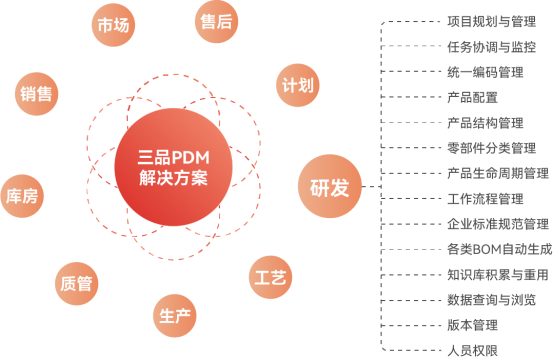三品PDM系统围绕制造业的实际场景,构建了多层次的管理能力: