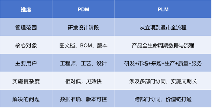 不用追着“最先进的系统”跑。PDM 够用就是 PDM,PLM 值得上就上 PLM——适合当前阶段的选择,比超前半步的选择更能落地。