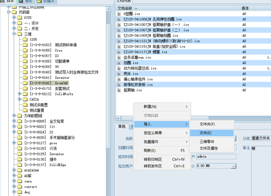 打开文档工作区,选择一个文件夹,点导入,从本地选择一套要导入的总装文件: