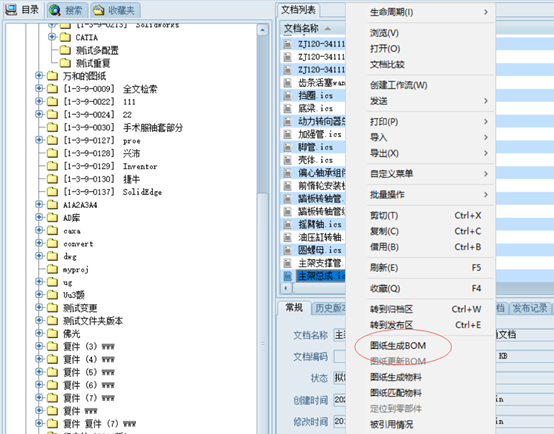 选中刚才导入的总装文件,右键,在弹出的菜单中选择“图纸生成BOM”: