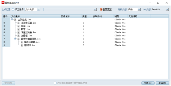 点“生成”完成BOM的生成