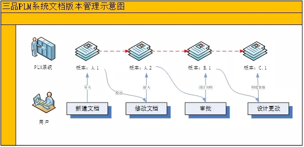 初始版本:用户在将文档导入PLM系统时,根据版本规则建立初始版本,默认为A.1。