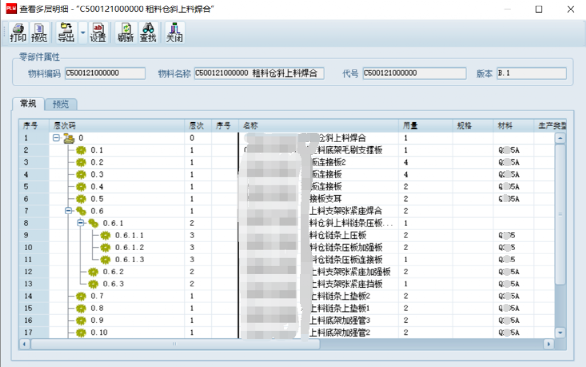 l产品结构管理:建立和维护设计阶段的产品BOM模型,反映零部件间的装配层次关系与有效性管理。