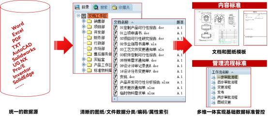 三品PDM系统提供分类管理功能,支持将经过验证的典型设计、标准件、通用件、标准工艺规程等作为企业知识资产入库管理。在新项目启动时,工程师可从知识库中快速检索和复用已有成果。系统还能帮助企业梳理和固化设计规范、制图标准等,并通过流程强制应用,提升设计的标准化水平。